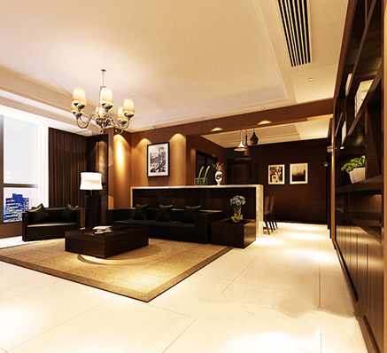 是以中國傳統文化作為背景,在色彩搭配上以黑、紅、為主,室內多采用對稱式的布局方式,格調高雅,造型簡樸優美,色彩濃重而成熟。